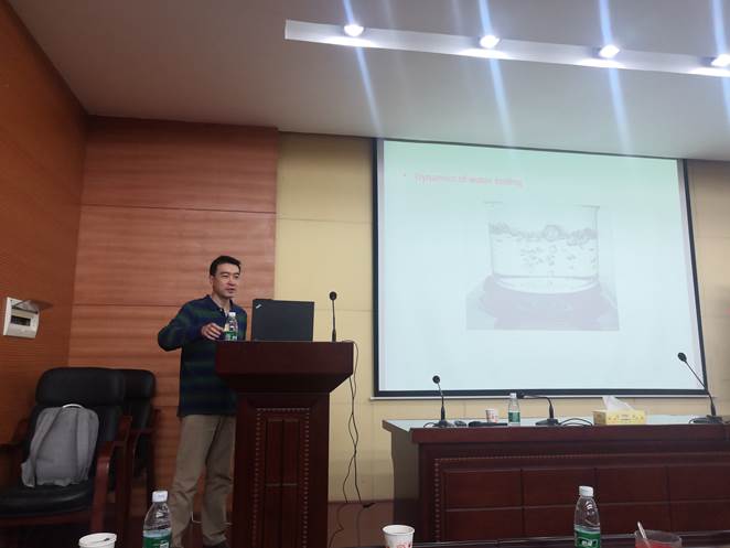 在本次报告中,田雨教授通过构造和研究在两个超流相之间具有一级相变的全息超流模型,介绍了规范/引力对偶可以给出在不具有局域平衡时某些强耦合体系的推广的热力学描述,研究了一级相变时的畴壁(domain wall)结构,包括构造1维的静态畴壁构型以及对2维情形泡泡的成长过程(类似于烧开水)进行了动力学数值模拟。张宏宝副教授介绍了作为处理有限温度超流的有效全息引力模型,发现在有限温度下的朗道不稳定性会导致孤子与涡旋的产生,进而生成湍流,作为中间暂态来降低超流的速度至朗道临界速度之下,并指出这一发现如何帮助人们理解发生在超流非平衡过程中的相关现象。