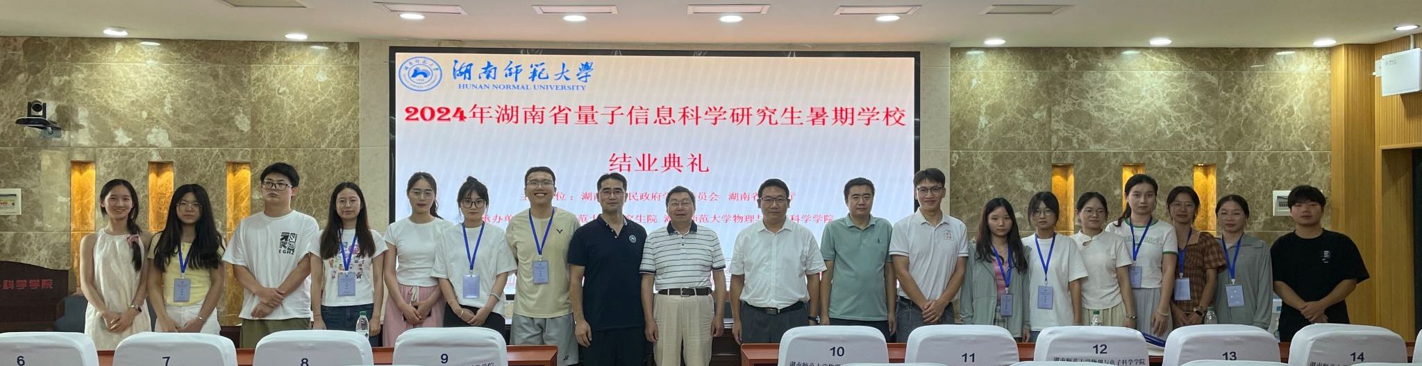 (编辑:雷豪洁)2024年8月21日下午,湖南省量子信息科学研究生暑期学校结业典礼在格物楼509报告厅隆重举行。湖南师范大学原副校长、低维量子结构与调控教育部重点实验室主任匡乐满教授,量子人工智能专家、清华大学邓东灵教授,物电院副院长廖洁桥教授,物理系副主任任昌亮教授等专家,以及全体学员参加了结业典礼。典礼由物电院副院长欧阳钢教授主持。