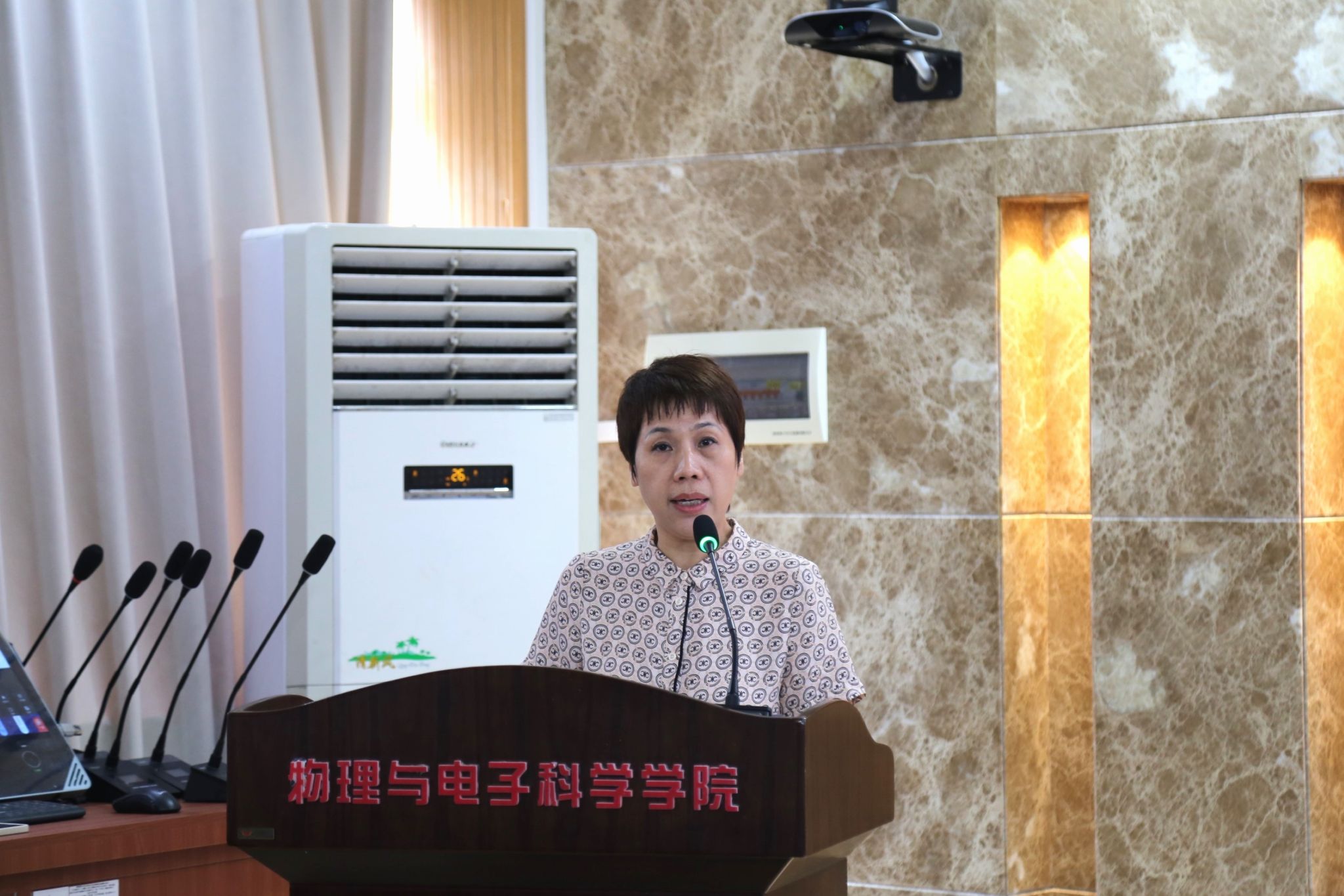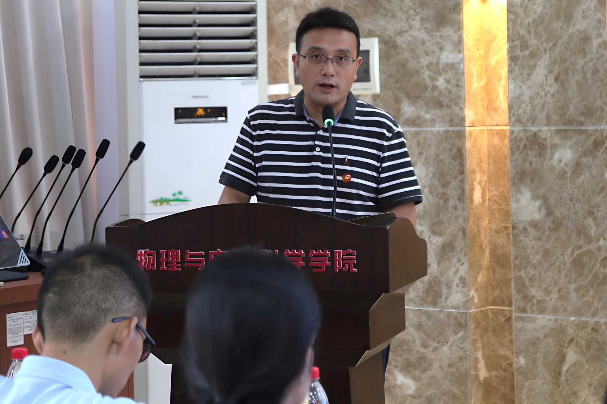 (通讯员 黄浩男)9月6日中午,物理与电子科学学院于格物楼509教室举行第二十三次共青团员学生代表大会。校团委书记陈天嵩、院党委书记罗嵘、党委副书记郭铭伟、学工办主任黄维、学生工作办公室全体辅导员出席会议。2023级辅导员滕茂主持会议。学院132位团员学生代表参加此次会议。