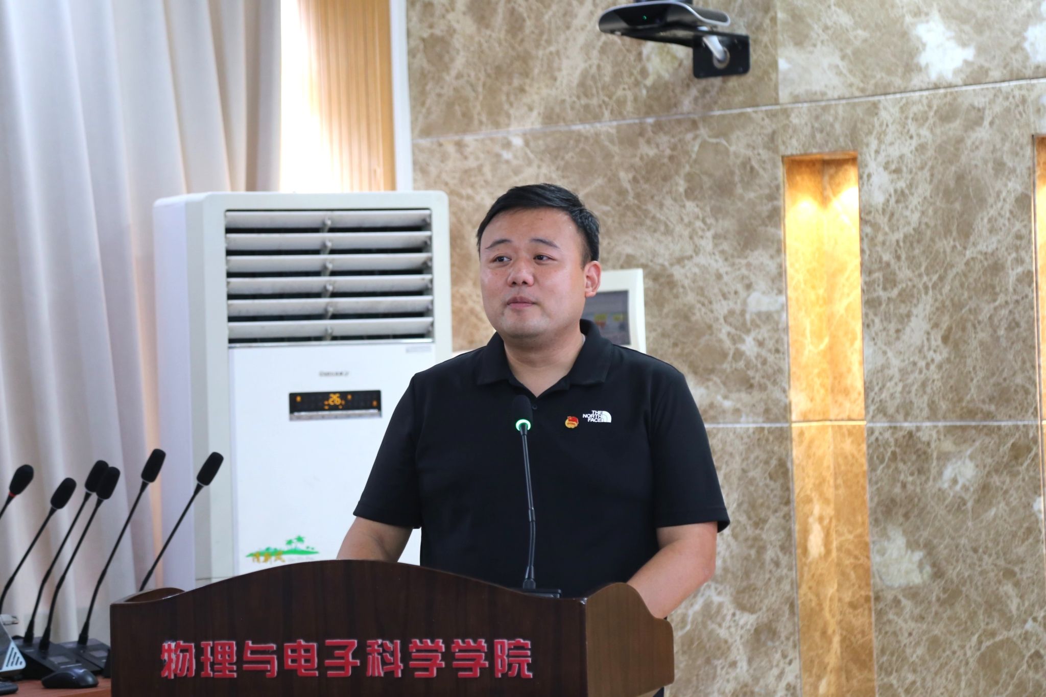陈天嵩代表校团委对关心支持学校共青团工作的物电院领导表示感谢。他指出,近年来物电院有许多坚守科研战线的教授和参加创新大赛的学生,陈天嵩希望同学们以他们为榜样,牢记习近平总书记对青年的殷切嘱托,发扬吃苦耐劳的精神。同时,他希望新一届团学干部能传承党有号召、团有行动的优良传统,锻造忠诚担当、实事求是、朝气蓬勃、清廉干净的共青团组织。