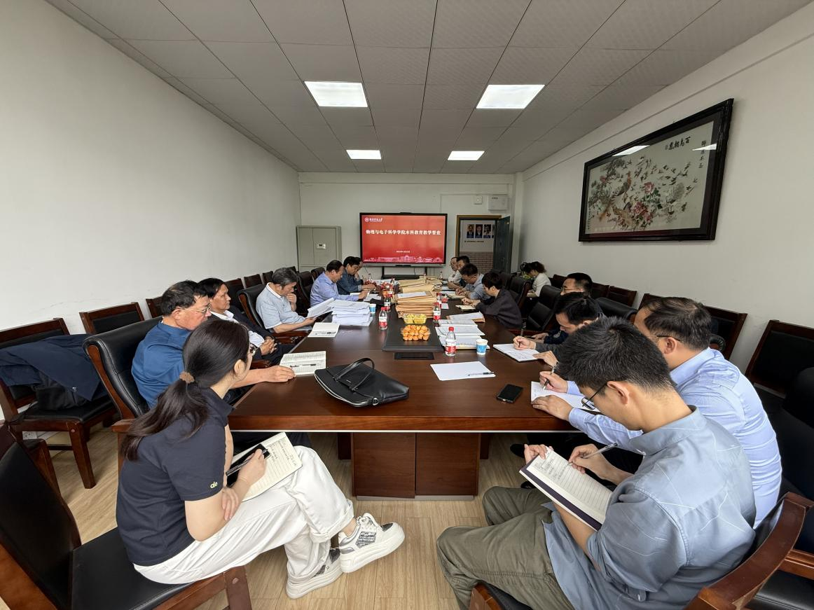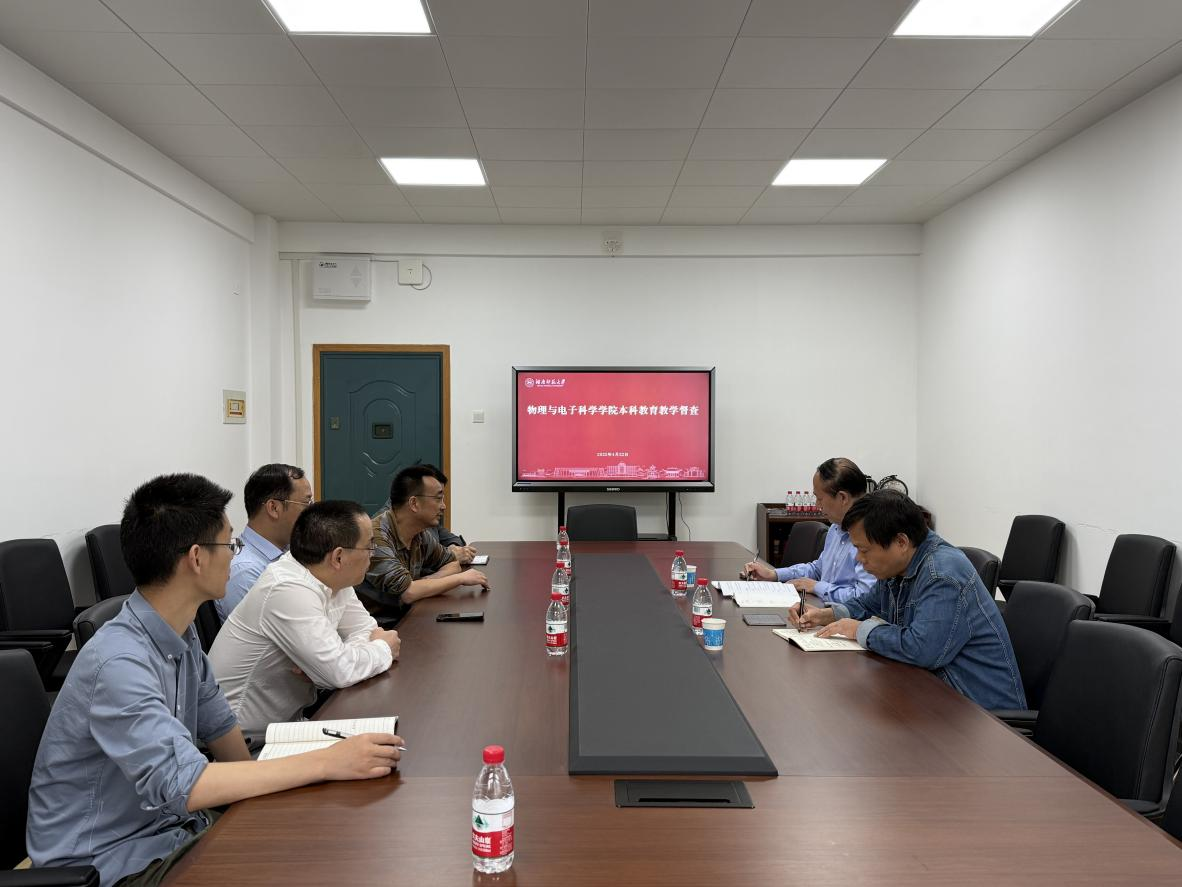 (通讯员:周心雨)2025年4月22日上午,湖南师范大学第八届教学督导委员会赴物理与电子科学学院开展本科教育教学常规督查工作。本次督导组由校教学督导委员会主任、原副校长黎大志和副主任委员兼第三组组长宋善炎带队,组员包括刘先锋、兰浩、张学军和钟坚成等四位委员。物理与电子科学学院党委书记罗嵘、副院长潘启沅、物理系主任钟显辉、电子系主任蒋乐勇、应用物理学专业负责人周海青、教务办主任周丹、相关教师代表和工作人员参加了本次督查工作。