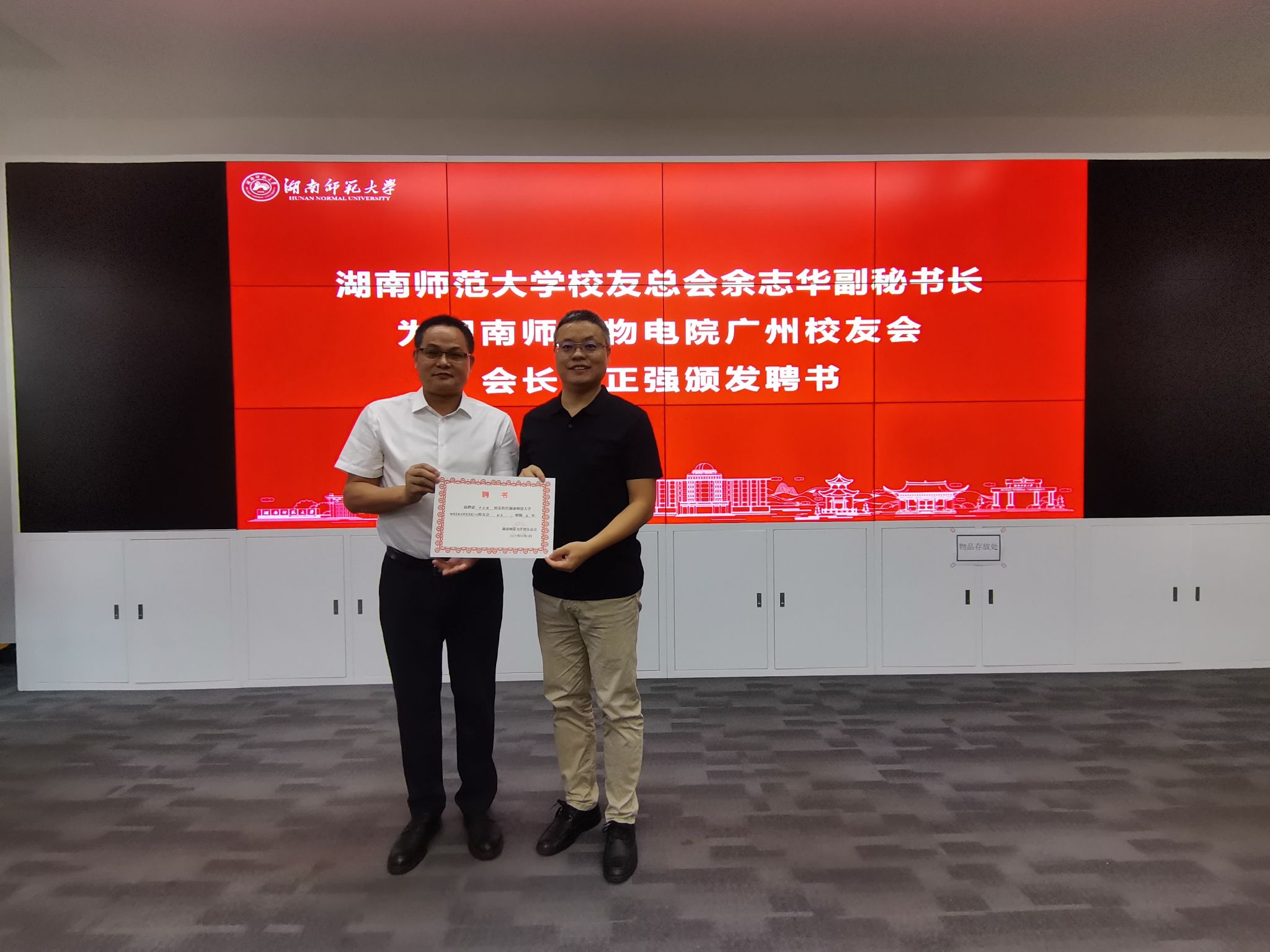 余志华宣读《关于湖南师范大学物理与电子科学学院广州校友会换届的批复》。