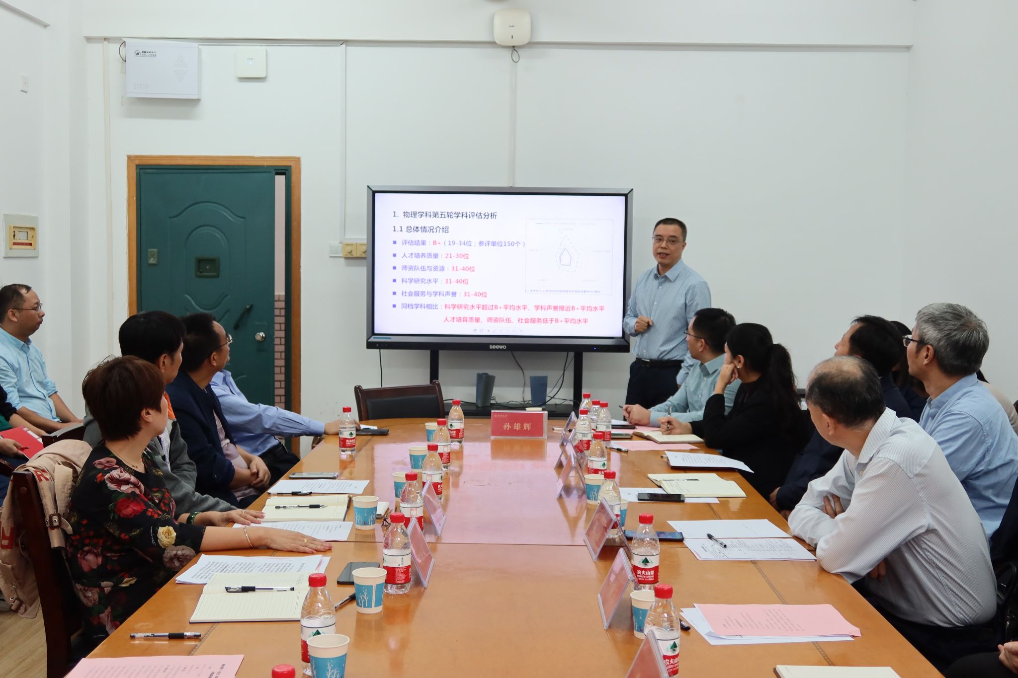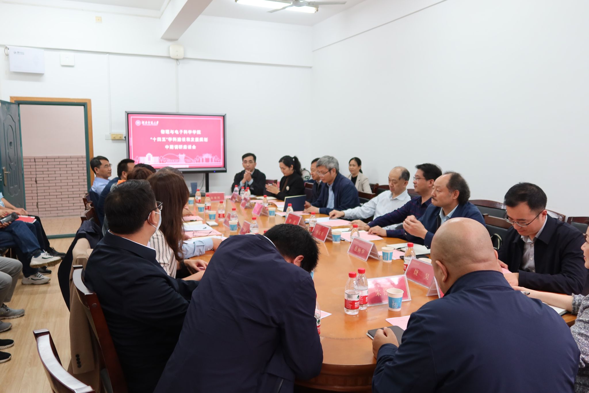 学校发展规划与学科建设处处长孙岳兵、科技处处长唐东升、资产经营管理公司总经理蔡炳华、资产与实验室管理处处长许广、人事处副处长饶昊、研究生院党委副书记苏涵琼、创新创业教育办公室专职副主任朱浩浩、发展规划与学科建设处副处长孙雄辉、发展规划与学科建设处副处长覃志华,学院副院长钱盛友、副院长欧阳钢、副院长廖洁桥,物理系主任钟显辉和教师代表荆继良教授、吴普训教授、金湘亮教授等参加了会议。