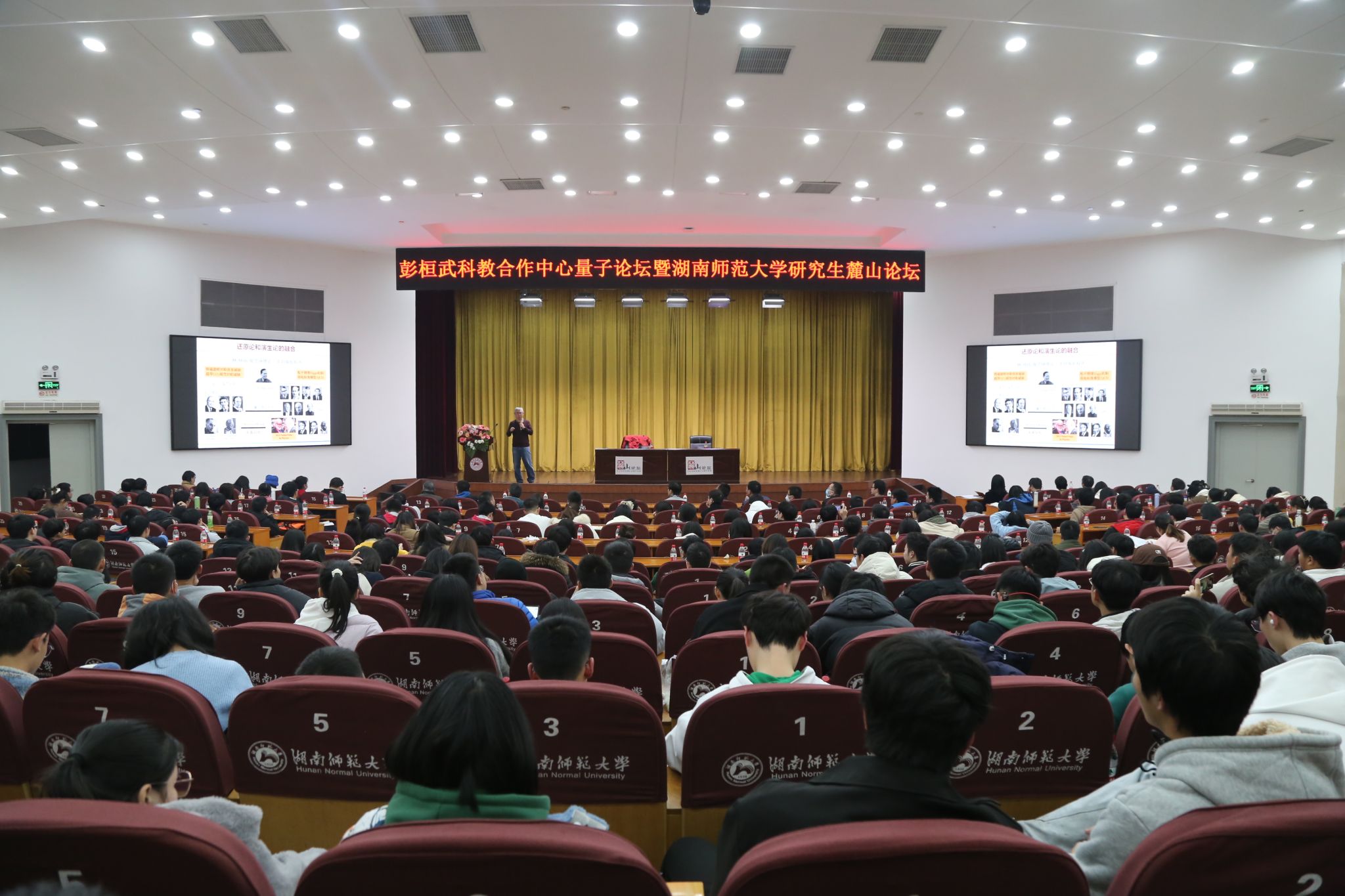 (供 稿 雷豪洁)2023年12月28日晚上20:00,理论物理学专家、中国科学院院士、发展中国家科学院院士、中国工程物理研究院研究生院创院院长、北京大学客座讲席教授孙昌璞院士做客我校彭桓武科教合作中心量子论坛,作了题为“物理学的‘学问’——漫谈物理学发展趋势和创造性学习”的主题讲座。讲座在国际学术报告厅举行,由湖南师范大学纪委书记姚春梅教授主持。