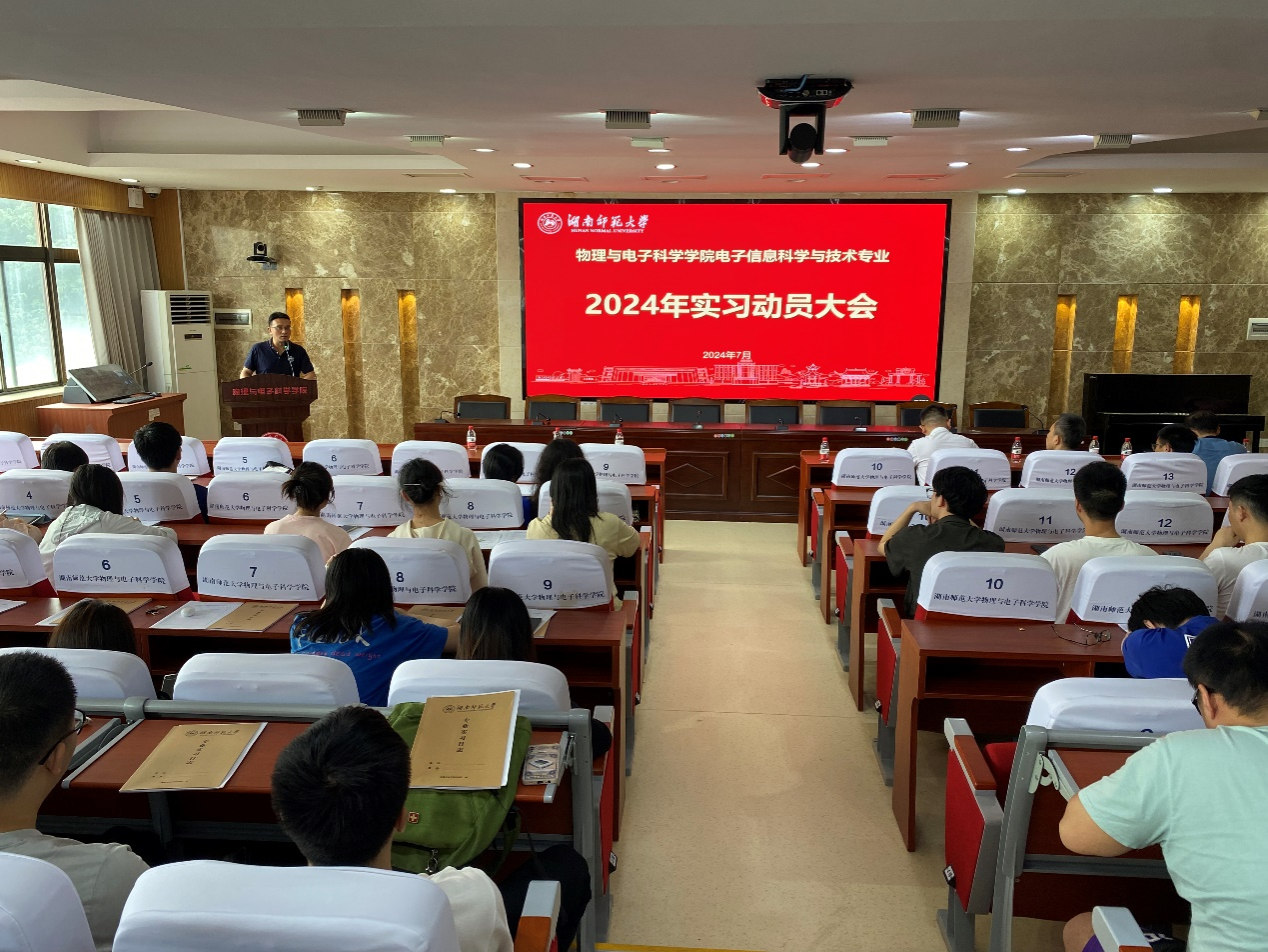 为更好地促进本科生将理论知识与实践能力相结合,加深本科生对专业知识与未来就业的了解,引导本科生做好实习前的各项准备。7月2日下午3:00,物理与电子科学学院在509报告厅召开2021级电子信息科学与技术专业学生实习动员大会,学院党委副书记郭铭伟、教学副院长潘启沅、电子系主任蒋乐勇以及全体实习指导教师参加了本次动员会议。