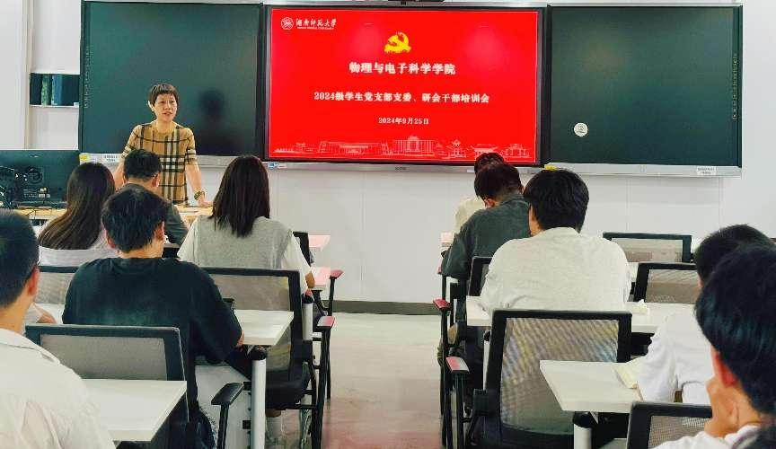 9月25日,物理与电子科学学院召开2024年学生党支部支委、研究生会干部培训会。会议由物理与电子科学学院专职组织员吴浪波主持。