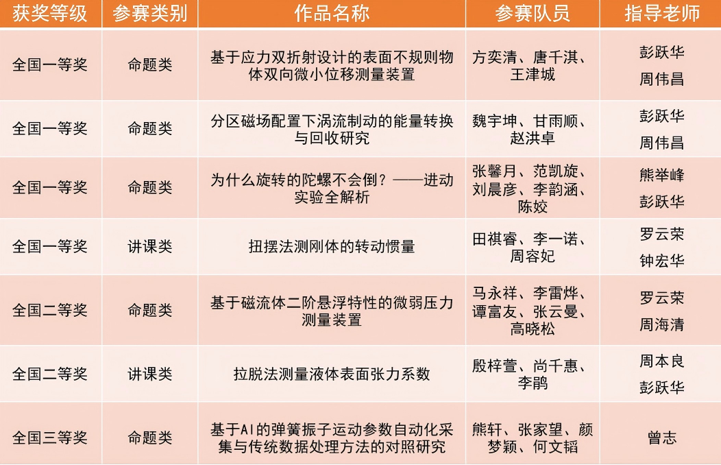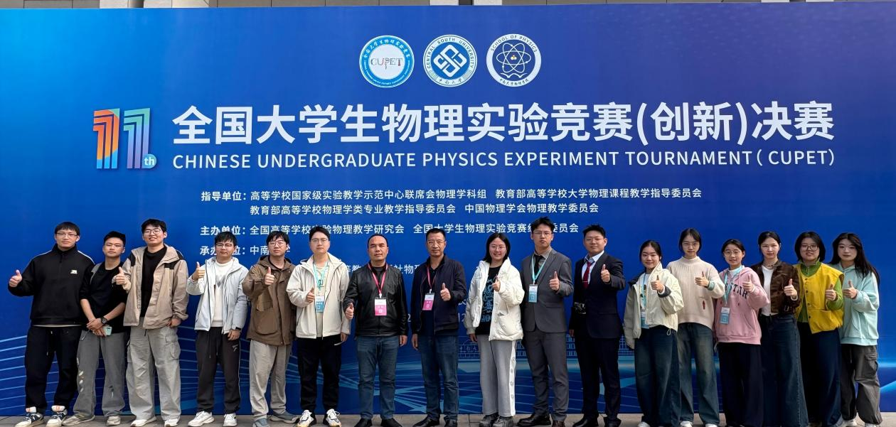 (通讯员唐千淇)2025年11月21日至23日,第十一届全国大学生物理实验竞赛(创新)决赛在中南大学圆满落幕。我校物理与电子科学学院参赛队伍表现优异,斩获一等奖4项、二等奖2项、三等奖1项,我校同步被授予优秀组织奖。