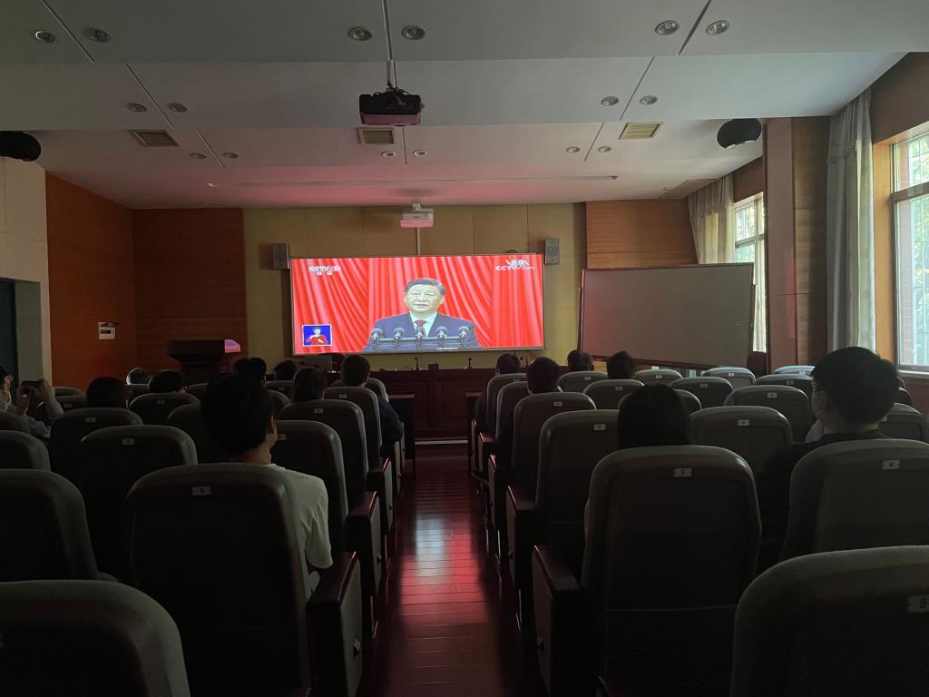 喜迎二十大,奋进新征程!10月16日上午,举世瞩目的中国共产党第二十次全国代表大会在北京开幕。物理与电子科学学院通过线上线下相结合的方式组织观看了开幕会盛况。我院党委委员、领导班子、教职工、学生党支部分别在格物楼323会议室、格物楼325教室、量子楼报告厅等三个分会场观看了党的二十大开幕会实况直播,同时组织非党员教师和学生居家线上同步观看,认真聆听习近平总书记代表十九届中央委员会向大会所作的报告。
