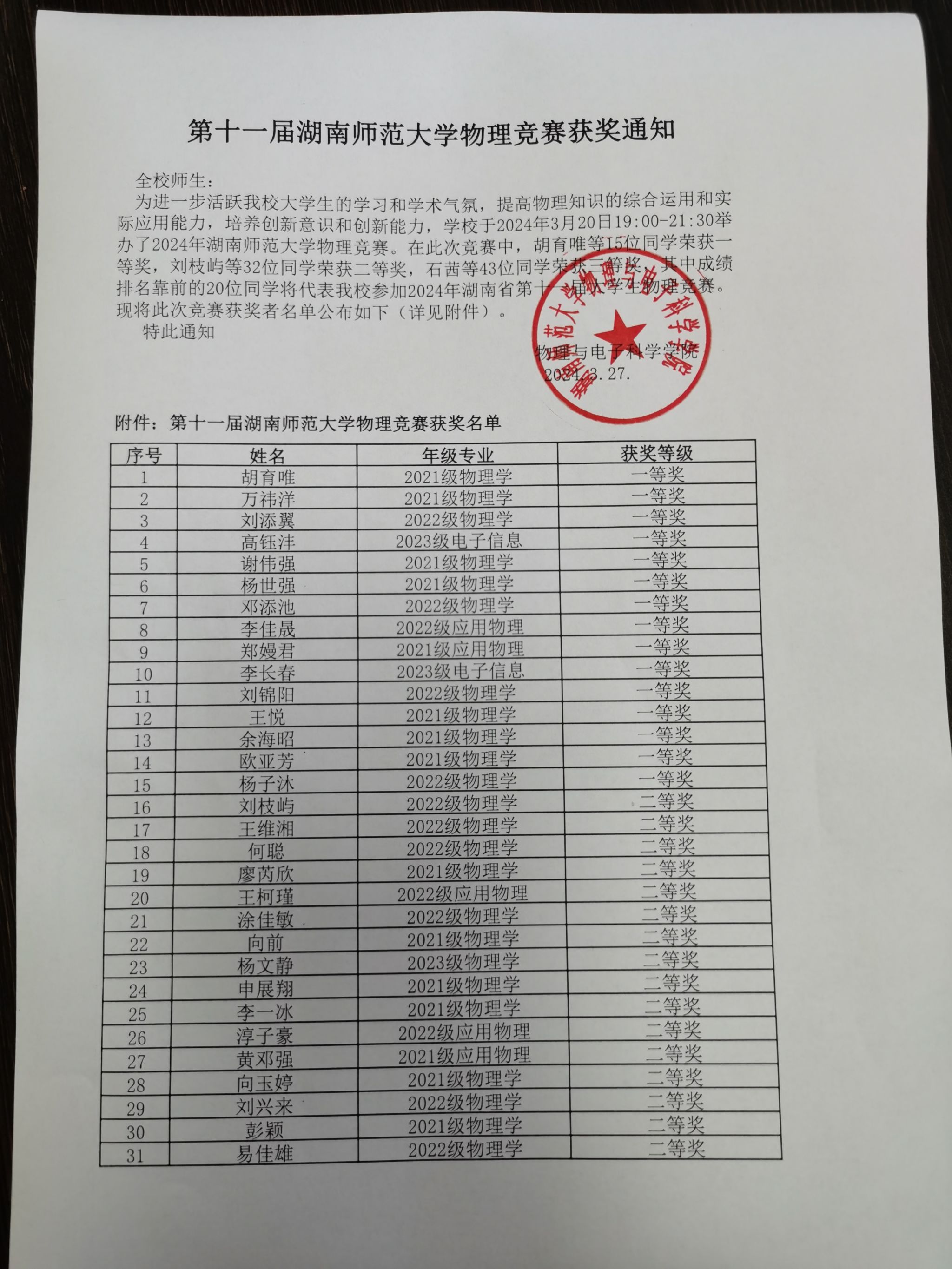下一条:(更新)关于2024年湖南师范大学物理竞赛考场安排的通知